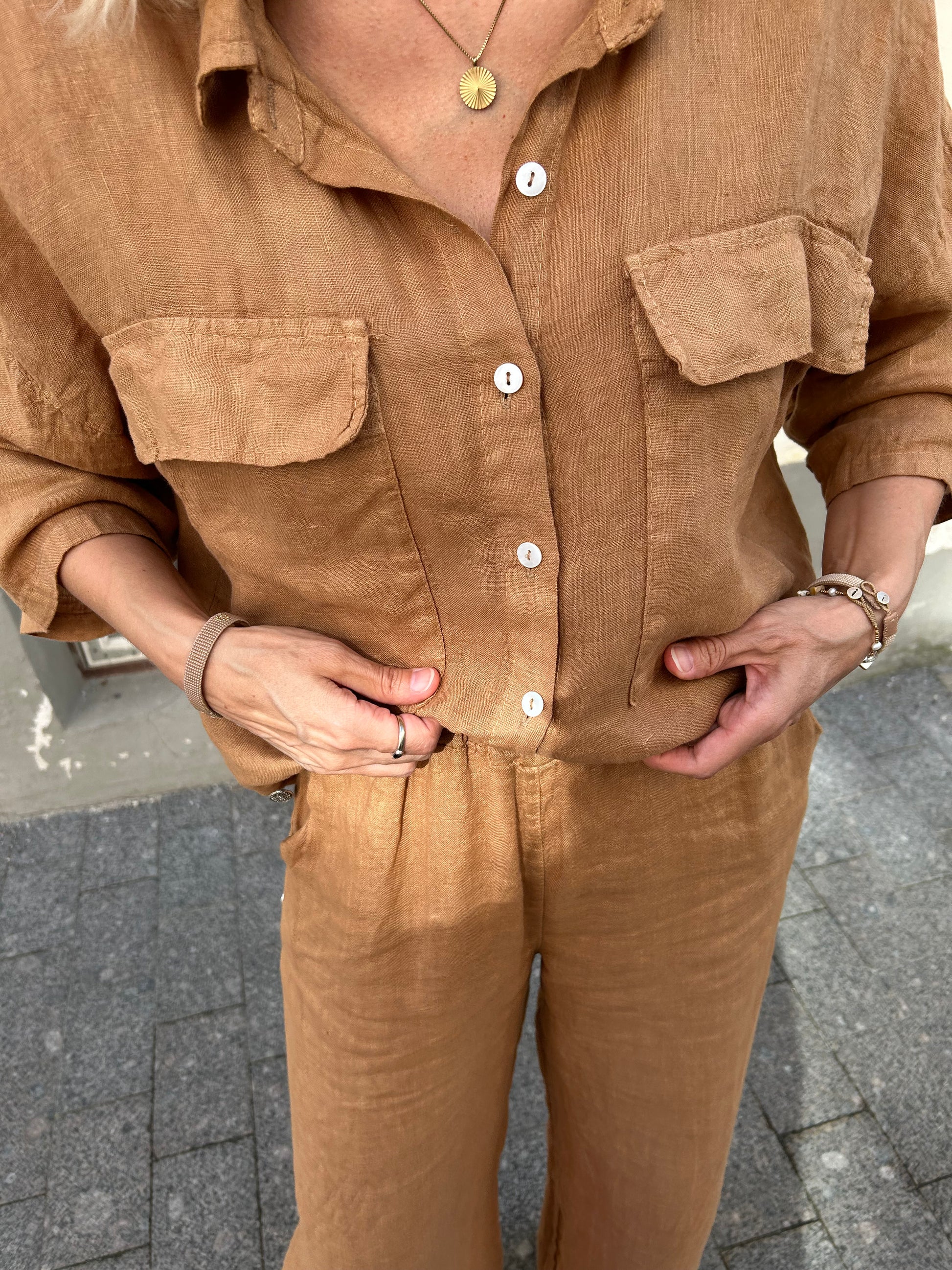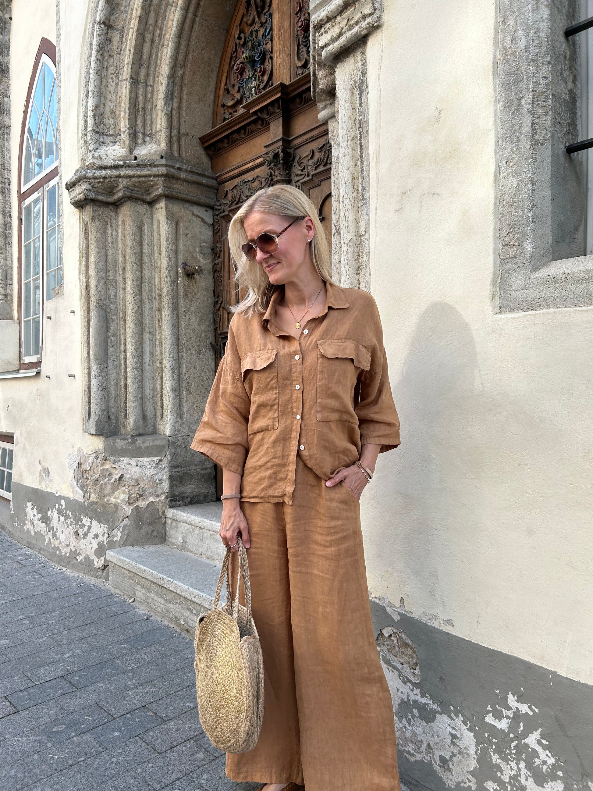 Take a dive into to the lovely mediterranean feeling with our Briona blouse. Briona blouse offers a relaxed fit and beautiful fine details. Including our signature amulet. Enjoy the softness and breathability of linen, that keeps you comfortable all day long.