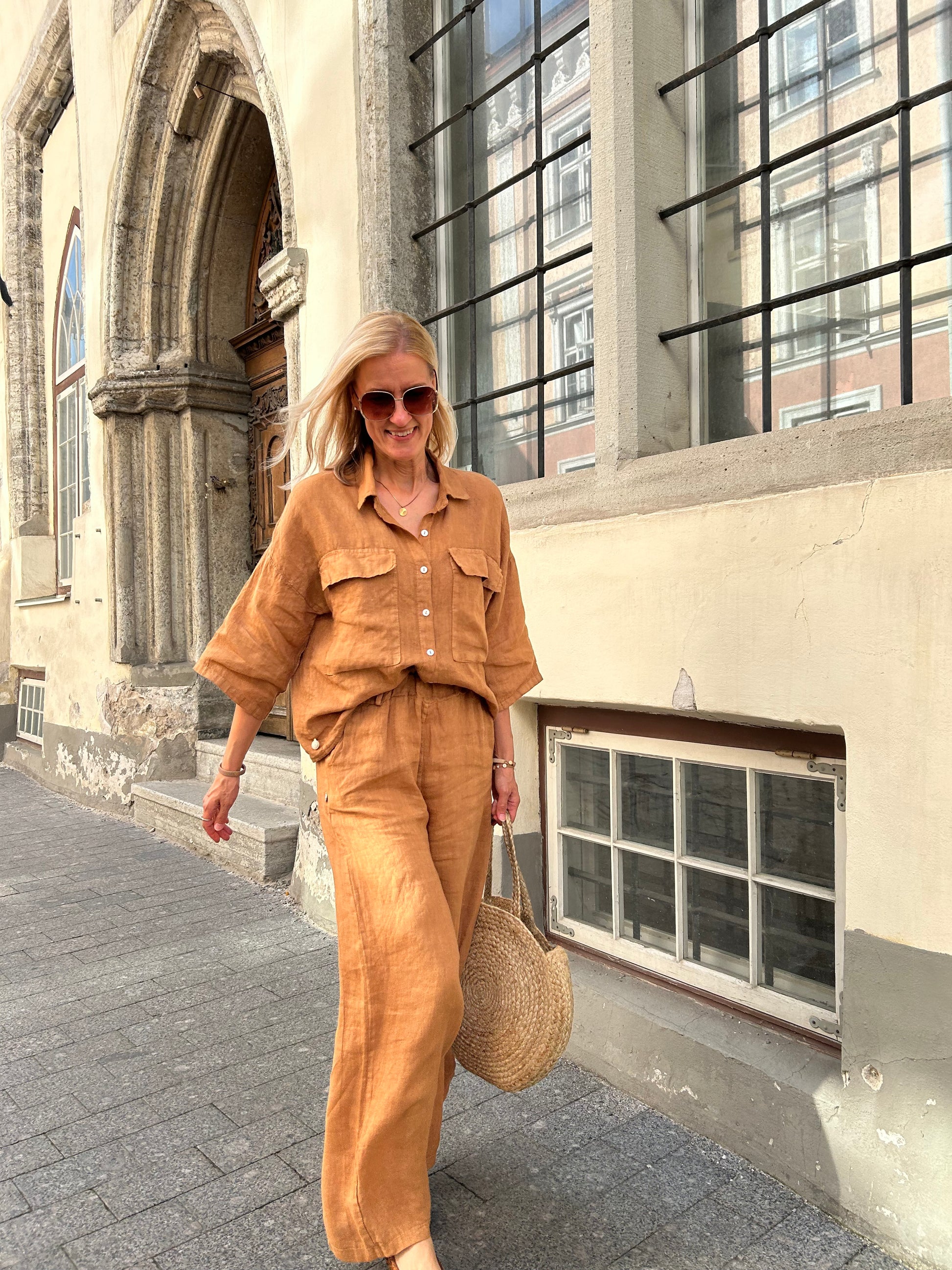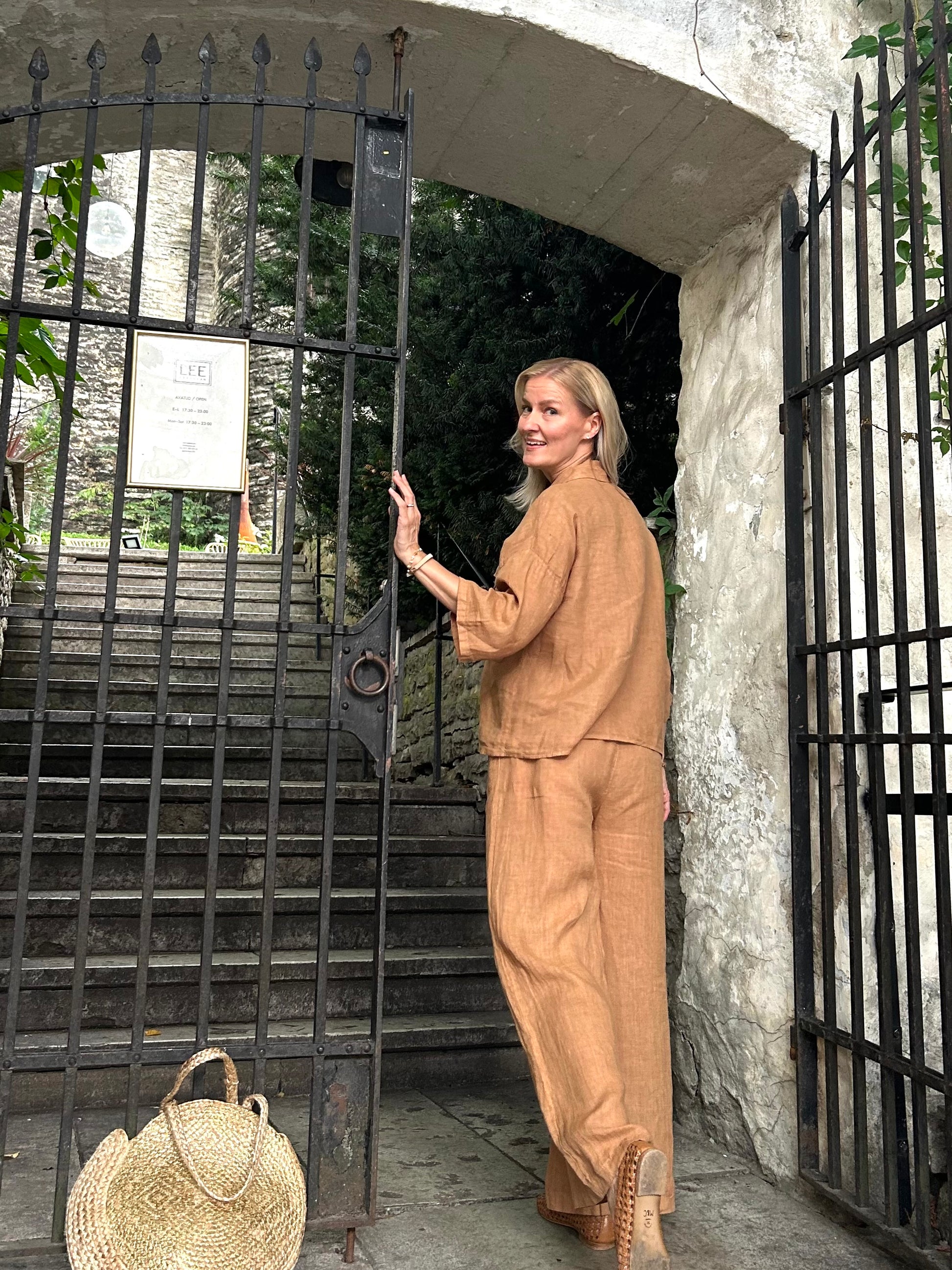 Take a dive into to the lovely mediterranean feeling with our Briona trousers. Briona trousers offers a relaxed fit and beautiful fine details. Including our signature amulet. Enjoy the softness and breathability of linen, that keeps you comfortable all day long.