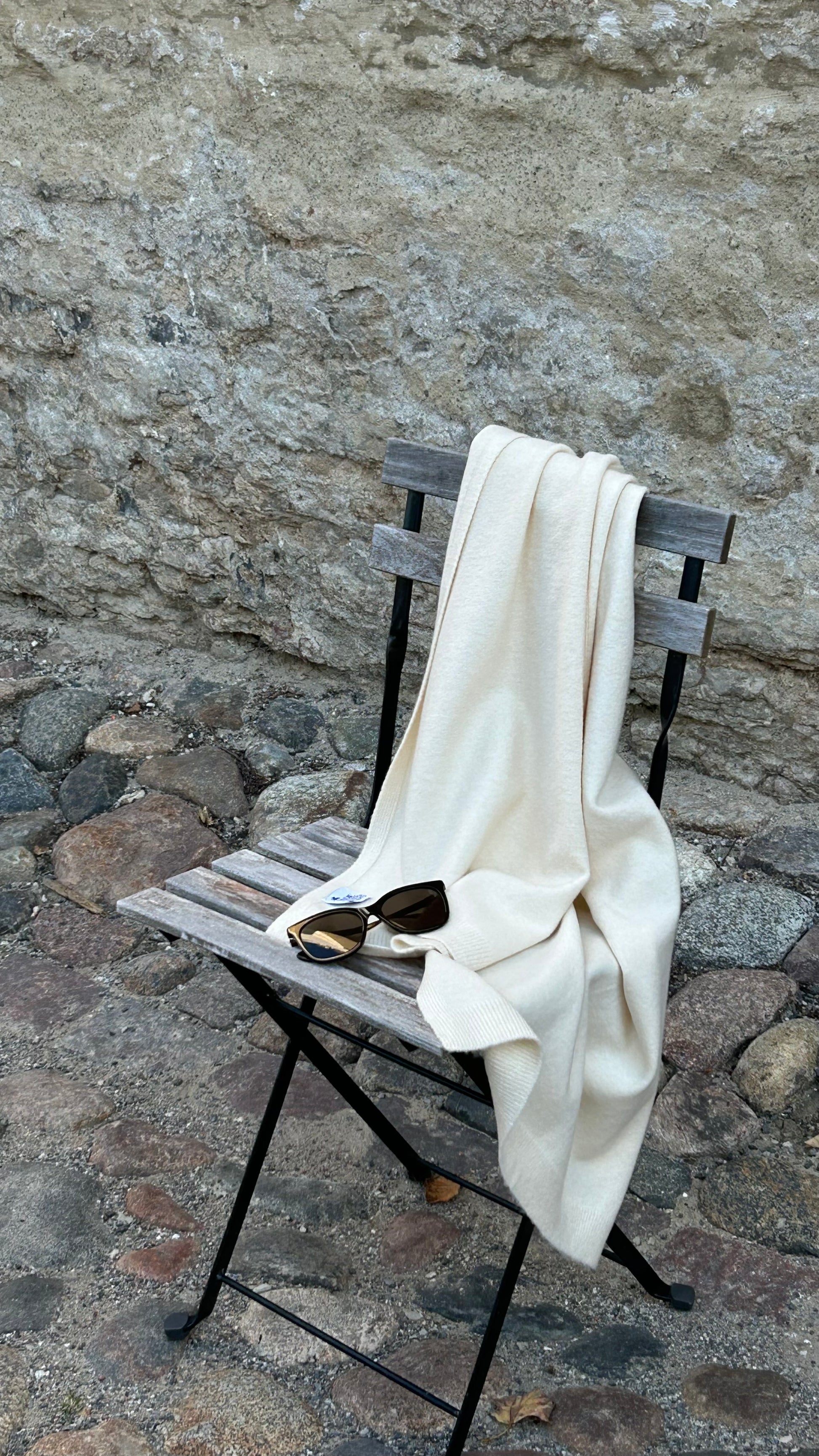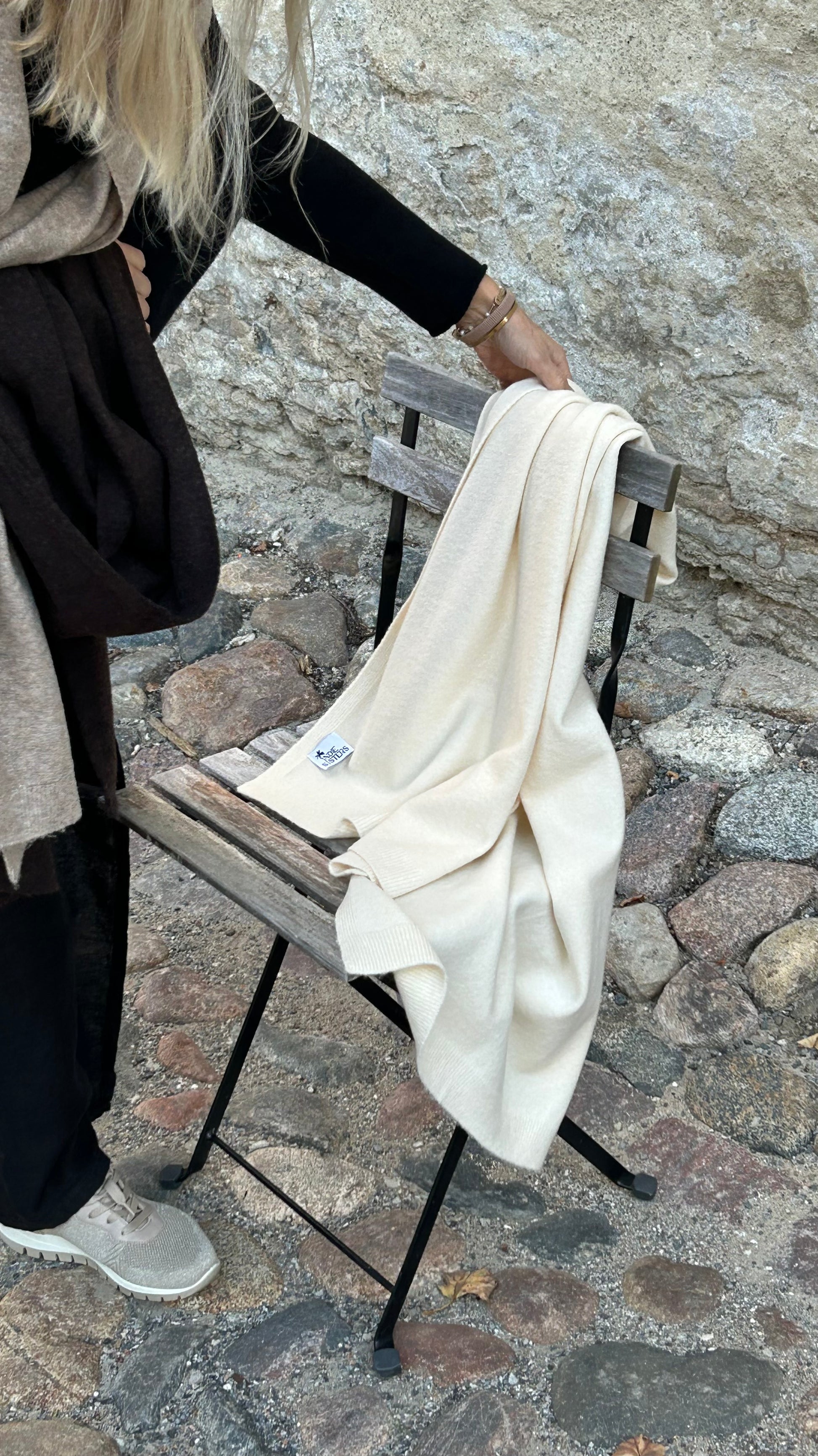 Effie scarf wraps you to the soft wool and viscose blend that doesn't itch. With the timeless style Effie scarf in melange vanilla adds the effective look to complete. Can't go wrong with paring the scarf to our monochrome style.