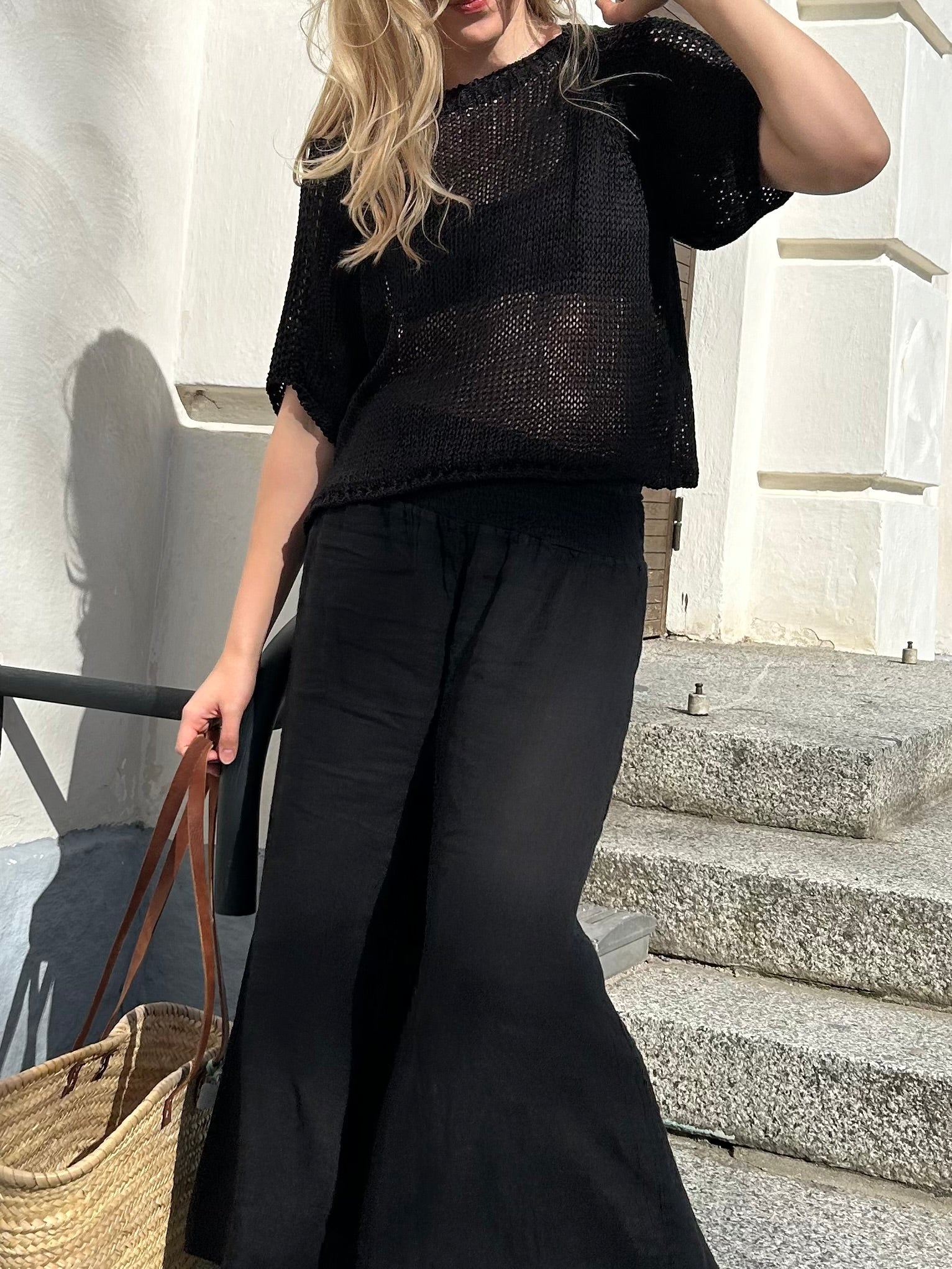 Inspired by ease of coastal living. Zoe fishnet shirt is lightweight essential for sun-drenched days. Crafted with delicate fishnet weave, this semi-sheer piece is designed to layer beautifully over your favorite bikini. The netting is subtle and intricate — offering texture without overpowering, and letting just enough sun-kissed skin peek through. Whether you're strolling a sun-drenched harbor or lounging by the sea, Zoe is your go-to piece for laid-back luxury.